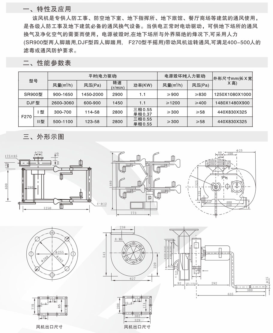 + 电动脚踏(手摇)两用人防风机